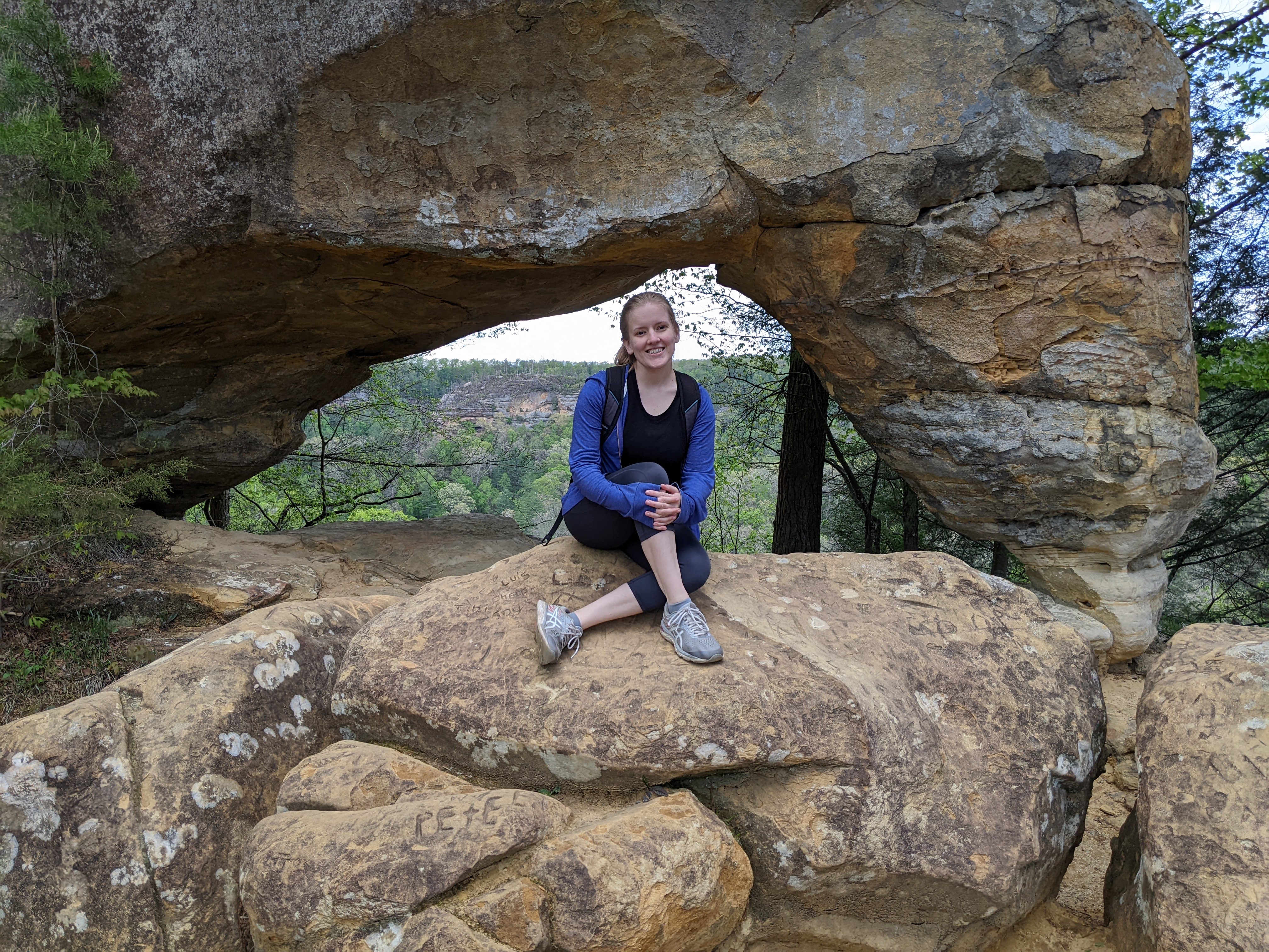 Over the past almost two weeks, I’ve been trying to focus on practicing the mindfulness attitude of non-judgement, specifically as it relates to my body. This was put to the test last weekend when I went on a hiking trip through Red River Gorge in Kentucky. If you haven’t been there, I definitely recommend it. Nestled within the Daniel Boone National Forest, the gorge contains beautiful hiking trails and unique caves and rock formations. Hiking is probably my favorite outdoor activity, but living in the middle of downtown Columbus, I don’t have a lot of opportunities. I was really nervous about how my body would respond, as this was my first time visiting Red River Gorge. I tried to approach this vacation balancing my non-judgmental mindset while also being really intentional about listening to my body. I practiced regular body scans, identifying the sensations of different parts of my body with non-judgemental descriptors – for example, asking myself “is this muscle sore because I walked a lot of stairs yesterday going in and out of a valley, or does it feel like electric shocks in my legs?” This required saying no to some of the hikes with reviews of challenging rock scrambles and staying in a cabin instead of trying to camp. But overall, I had a really good time. Yes, I had some expected soreness in my legs, back, and butt, but I was able to soothe my own anxiety, at least part of the time, reminding myself not to tell a story about the pain.