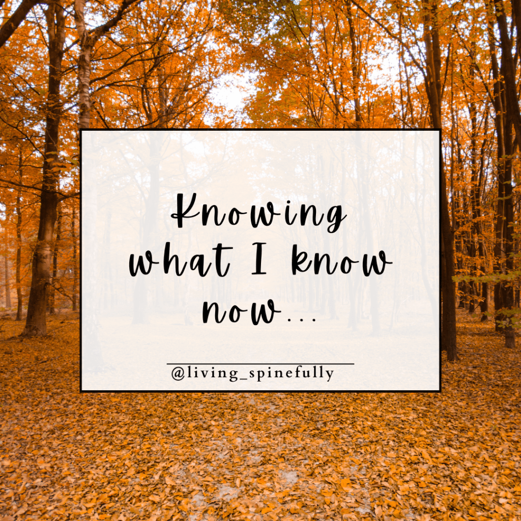 Knowing what I know now, I can see the through lines. I can see the ways that scoliosis contributed to low self-esteem, control issues, and a lot of body insecurity. I’m angry that I wasn’t properly informed of the risks, the potential complications, the strategies to keep my spine in good health. But I can’t change the past. Knowing what I know now, I can also see the ways that scoliosis has made me more aware of the beauty of the present moment, more grounded in gratitude, and more compassionate towards others. While processing this upcoming anniversary with my therapist the other day, he asked me “what would you want to tell your 11-year-old self?” After some consideration, I decided on the this three-tiered message: